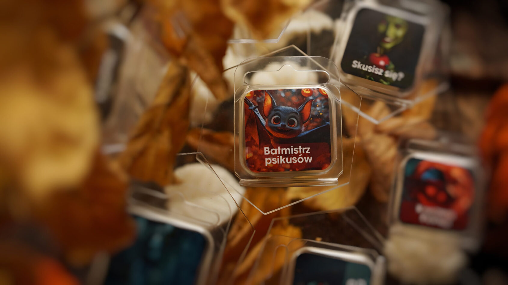 Batmistrz Psikusów to gwarancja humoru, radości i ciepła w Twoim domu. Idealnie sprawdzi się jako prezent dla każdego, kto uwielbia Halloweenowy klimat, a do tego lubi otaczać się delikatnymi, otulającymi aromatami. Możesz go podarować przyjaciółce/przyjacielowi, która/y uwielbia psoty lub komuś, kto ceni zabawne, oryginalne  gadżety w swoim domu. Wyobraź sobie wieczór pełen uśmiechów,  gdzie zapach złotego szafranu, ciepłego piasku i bursztynu wypełniają powietrze, a uroczy nietoperek w roli Batmistrza Psikusów patrzy na Ciebie z wesołej etykietki. Masz ochotę na więcej psotnych i magicznych zapachów? Spójrz na moją kolekcję wosków zapachowych i świec z serii Halloween albo skomponuj swój personalizowany zestaw!
