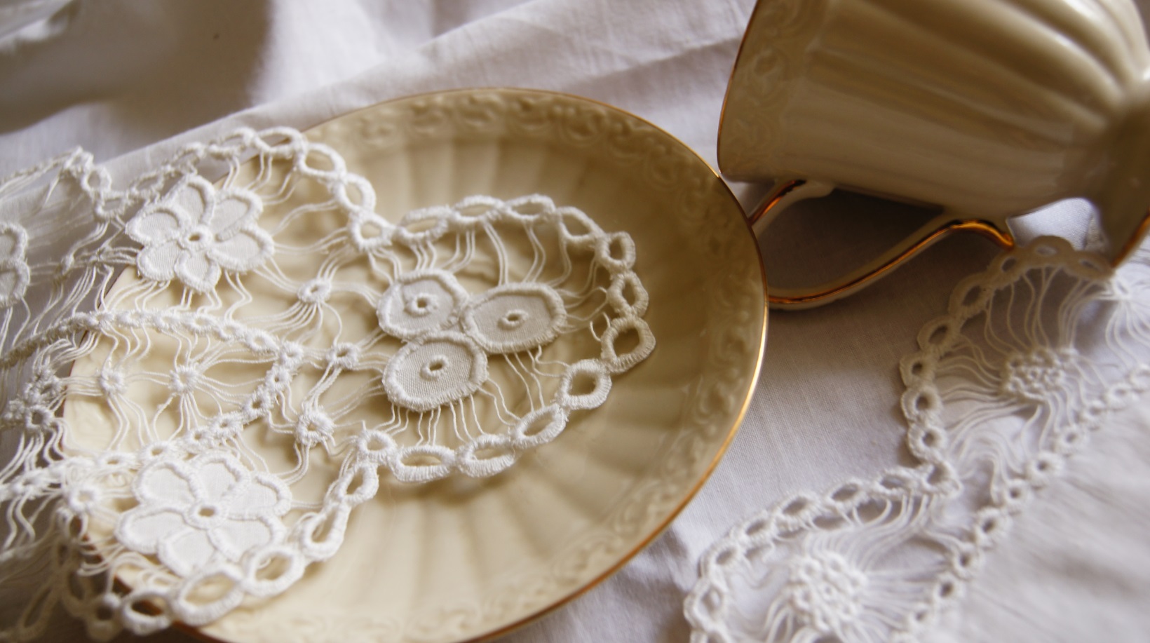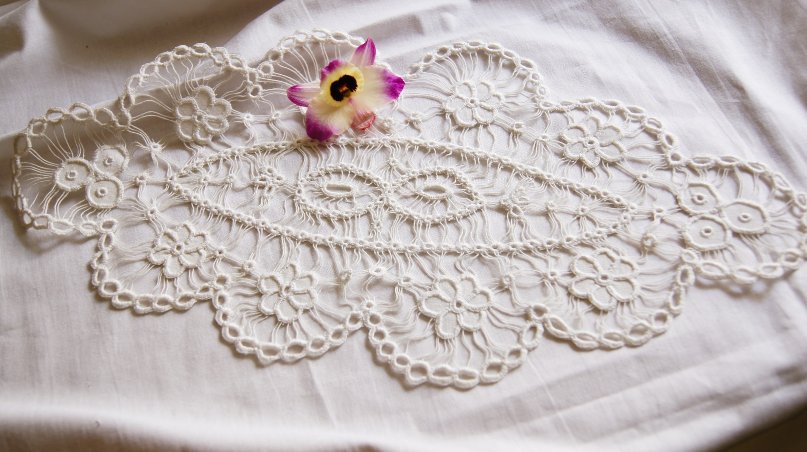 Okrągła biała serwetka ręcznie haftowana – Haft Richelieu