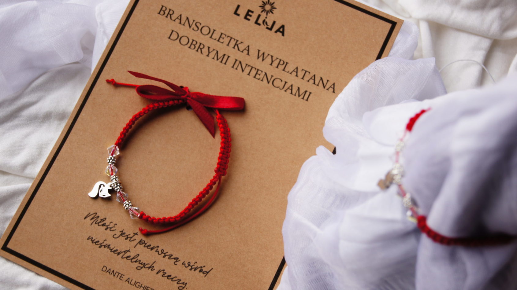 Czerwona bransoletka przynosi nam szczęście oraz odpędza wszelkiego rodzaju złe spojrzenia i złe intencje ludzi skierowane w naszą stronę. Bransoletki wyplatane ręcznie przez moją Ukochaną Babcię są wyjątkowe, w które wkładane jest całe serduszko tej Wspaniałej Kobiety. Gdybyście widzieli Jej radość gdy je tworzy. Bransoletka jest praktycznie nie do zniszczenia. Można z nią spać, kąpać się i robić wszystko inne. Będzie piękną ozdobą jak i osobistym amuletem.