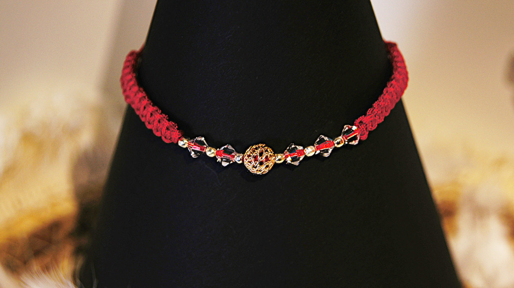 Czerwona bransoletka z kryształkami Swarovskiego.