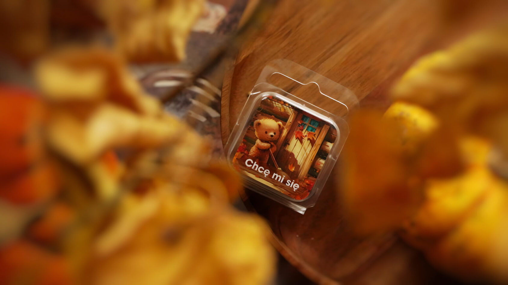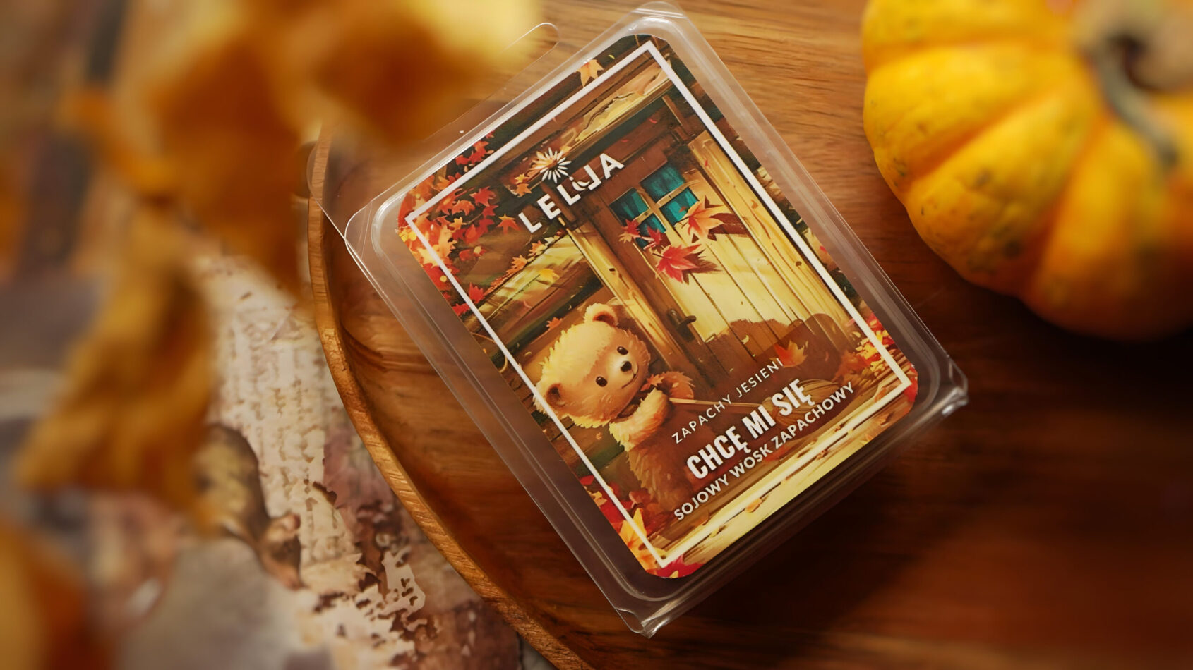Etykietka z grafiką z uroczym misiem w jesiennej, domowej scenerii to nie tylko dodatek do wosku, ale zapowiedź słodkiego, ciepłego zapachu, który wypełni Twój dom. Ten miś, jakby wyjęty z dziecięcych bajek, symbolizuje beztroskie, radosne chwile – a zapach Chcę mi się to właśnie takie wspomnienia zamknięte w woskowej kosteczce.