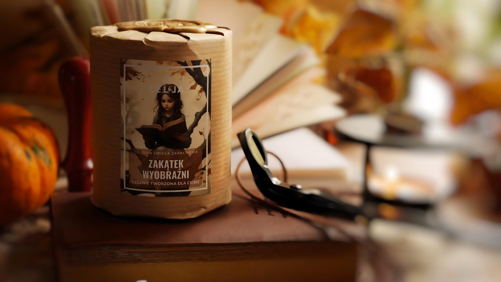Zastanów się, co by było, gdyby każda chwila mogła zamienić się w magiczną opowieść? Kiedy tworzyłam Zakątek wyobraźni, myślałam o dziewczynce, która zanurzona w książkach i marzeniach, siedzi pod rozłożystym drzewem. Ciepły wiatr przynosi zapach świeżych brzoskwiń, a w tle szumią delikatnie zielone liście. To ona – nasza młodziutka marzycielka – otwiera drzwi do swojego własnego świata, gdzie wszystko jest możliwe. A ja, projektując tę świecę, chciałam przenieść Cię właśnie tam, gdzie granice wyobraźni nie istnieją.