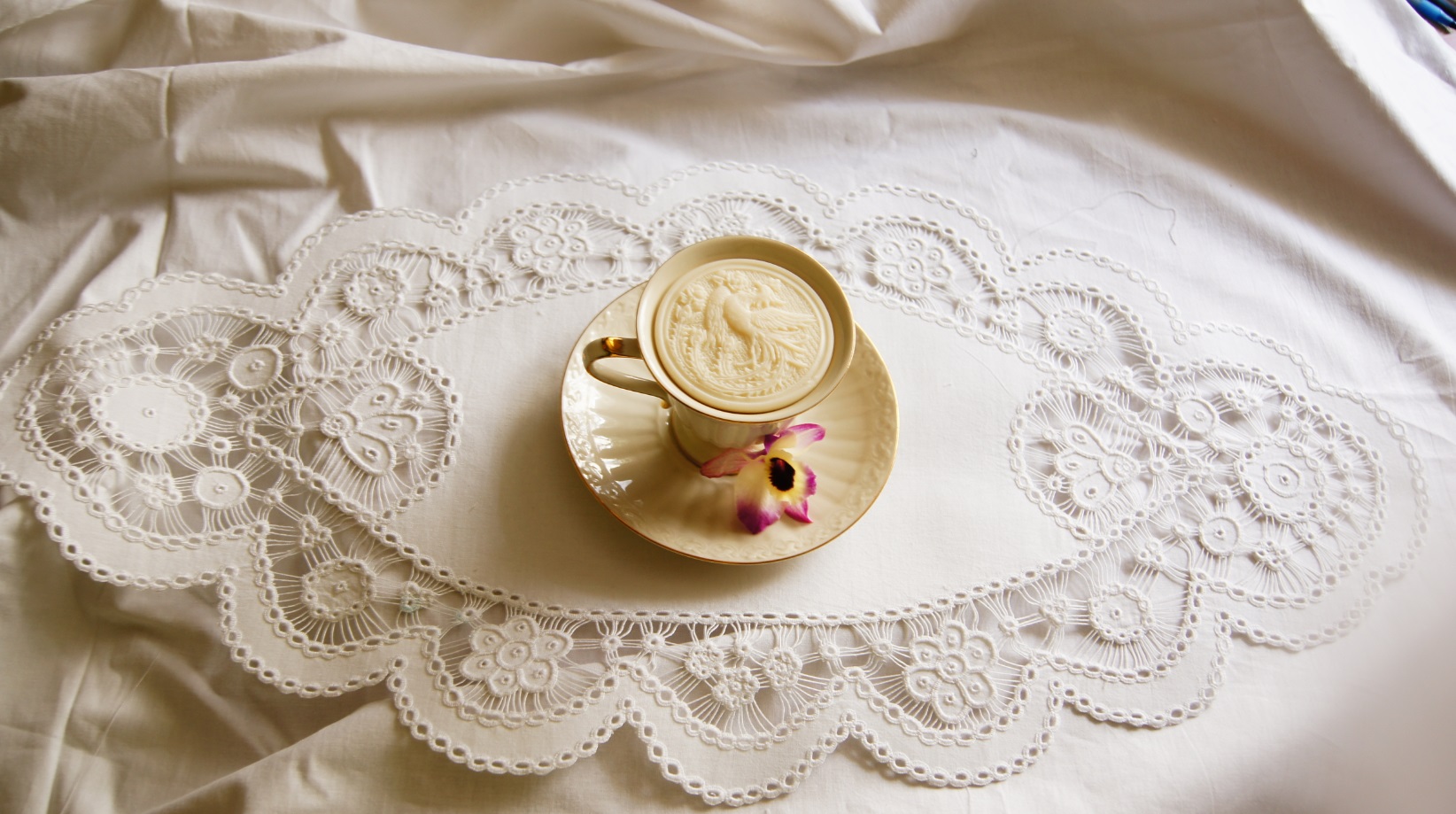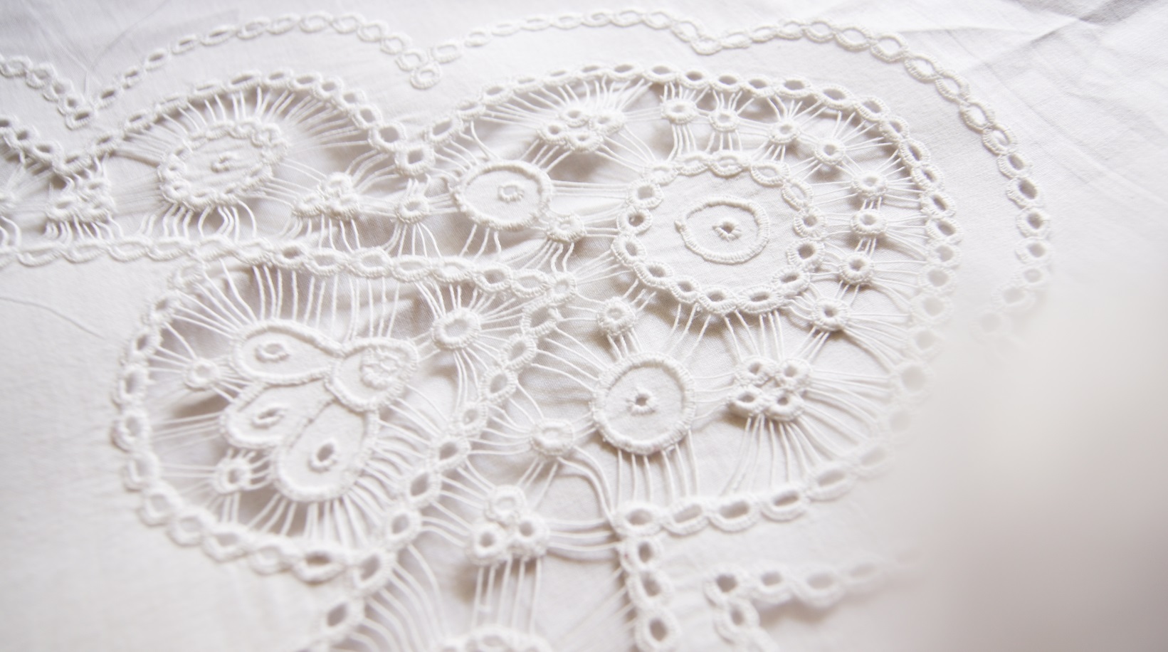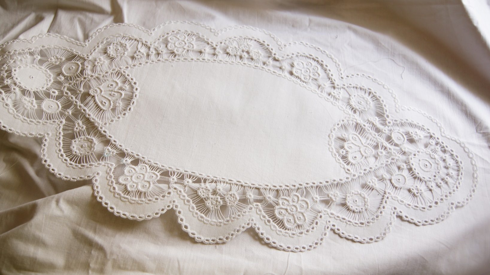 Okrągła biała serwetka ręcznie haftowana – Snutka Golińska