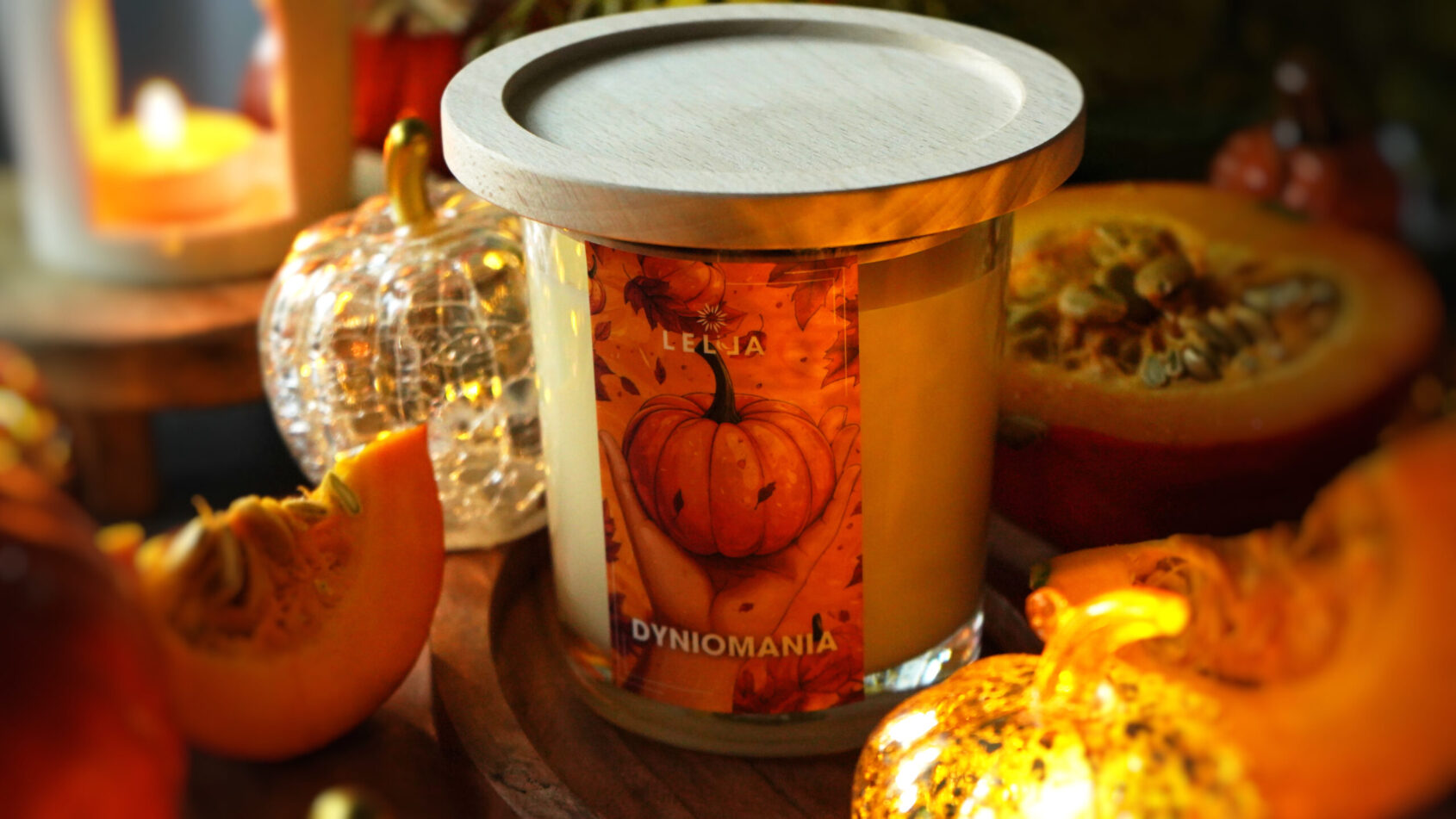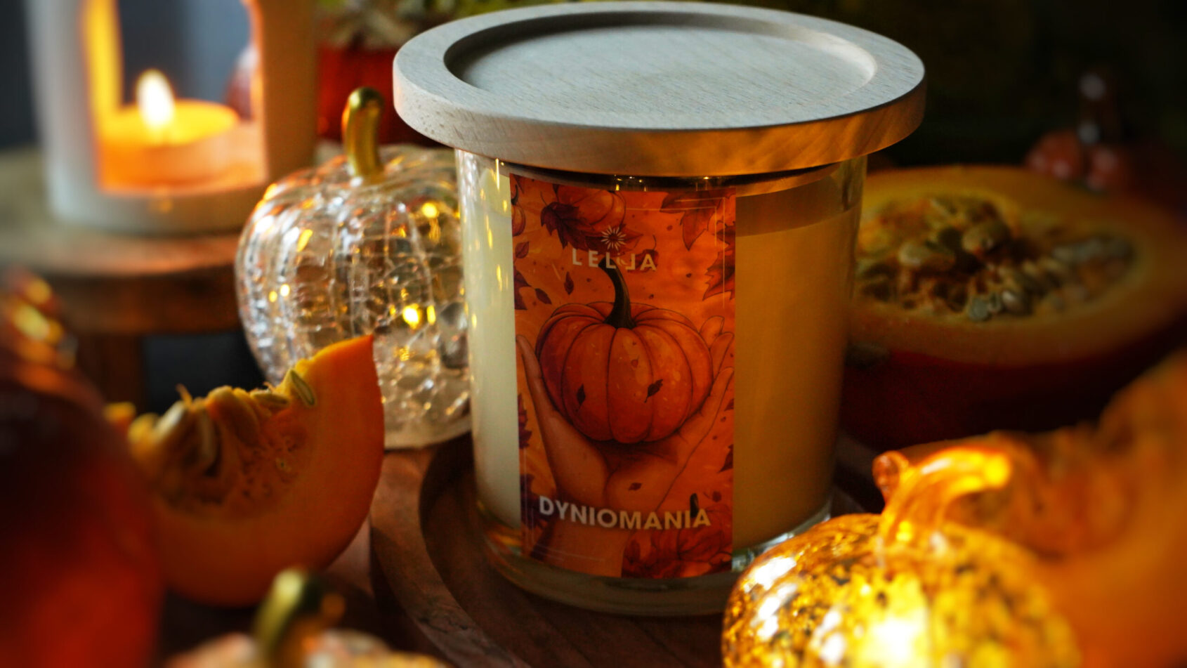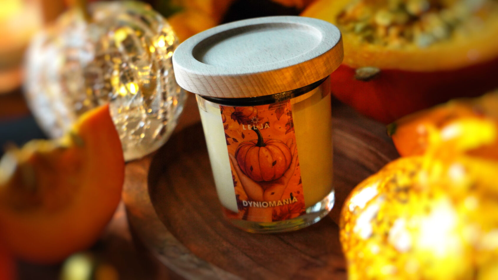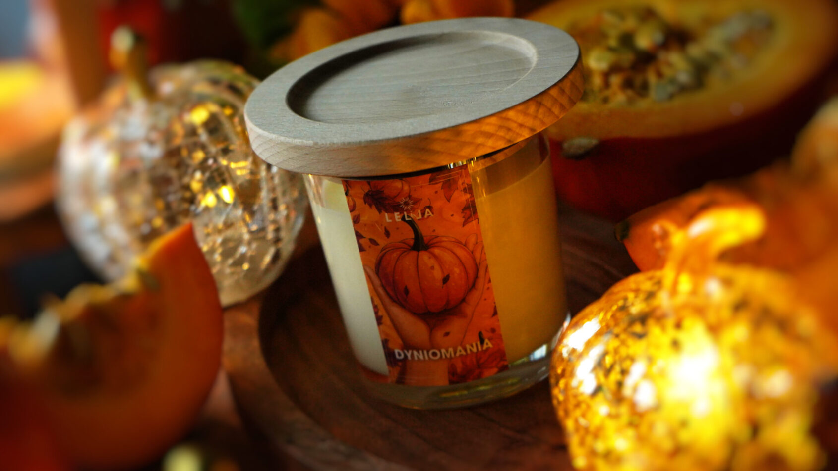 Dyniomania w wersji Premium – pachnąca jesienią świeca sojowa z drewnianą pokrywką
