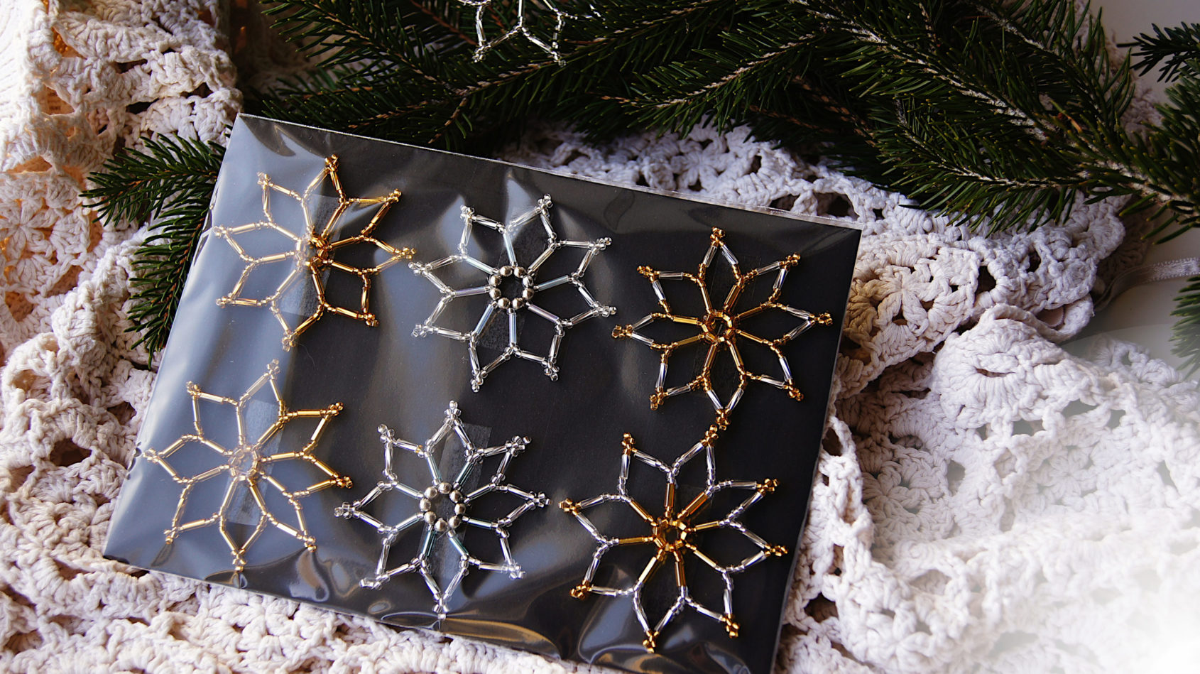 Kategoria: Gwiazdki z koralików Tag: boże narodzenie, choinka, gwiazdka, gwiazdki, koraliki, koraliki Toho, ozdoba, ozdoby, ozdoby świąteczne, srebro, święta, Toho, złoto
