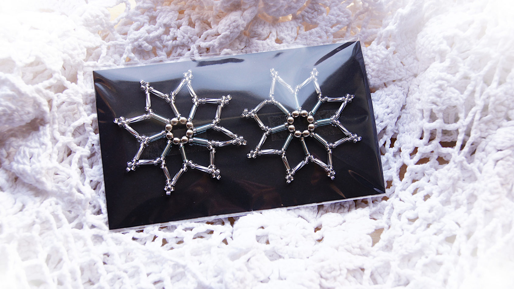 Gwiazdki z koralików srebrne. Pakowane po 2 sztuki