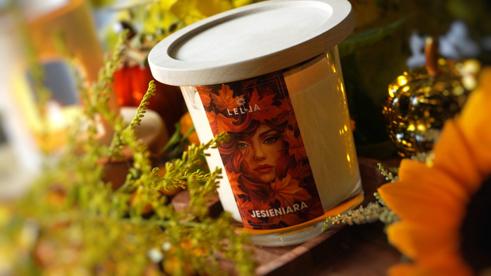 Tej jesieni chcesz odkryć wszystkie twarze Jesieniary? Poznaj jej siostrę z uroczym uśmiechem i rozwianymi włosami – dziewczęcą, beztroską i tak samo słodką jak zapach ukryty w środku bursztynowego słoiczka. W tej wersji Jesieniary czeka na Ciebie boska kompozycja dojrzałych brzoskwiń, soczystej pomarańczy, białych kwiatów i ciepłego drewna różanego – aromat, który jest jak promień słońca w chłodny, jesienny poranek. Postaw ją w salonie, sypialni albo zabierz ze sobą na werandę, by celebrować jesień tak, jak lubisz najbardziej – w swoim tempie, w swoim stylu.