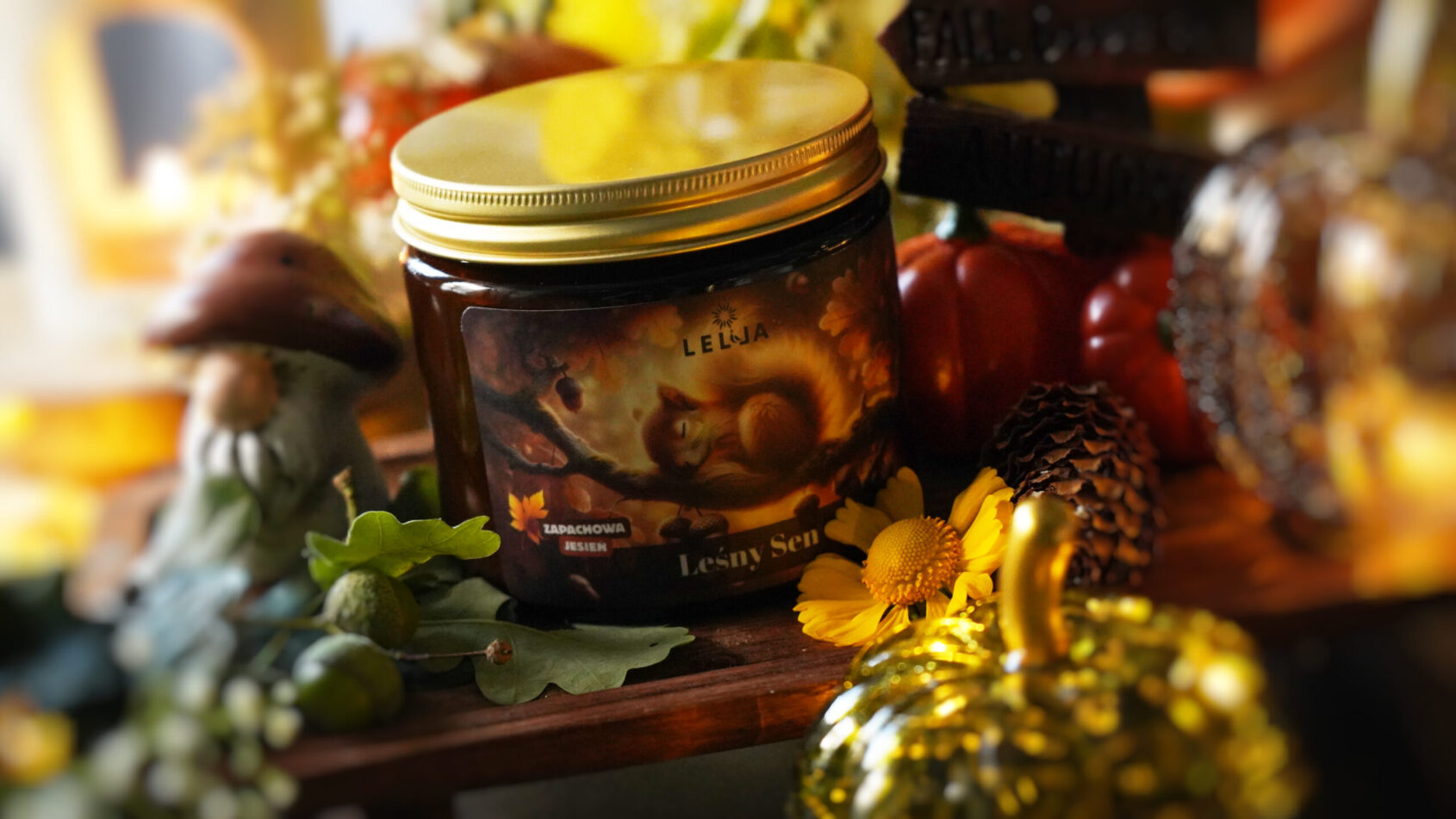 Leśny Sen to Twoja prywatna drzemka na gałęzi jodły – bezpieczna, pachnąca i absolutnie beztroska. Sosna i mech tworzą świeże tło jak chłodne, poranne powietrze w sercu lasu, a delikatna słodycz leśnych owoców muska nozdrza niczym promień słońca przebijający się przez korony drzew. Ta świeca koi jak kocyk z igliwia i szyszek – pachnący, naturalny i idealny na chwilę zapomnienia. Spójrz na etykietę – jeśli ta śpiąca wiewiórka mogła sobie wymarzyć jeden zapach do przytulnej norki, to właśnie ten.