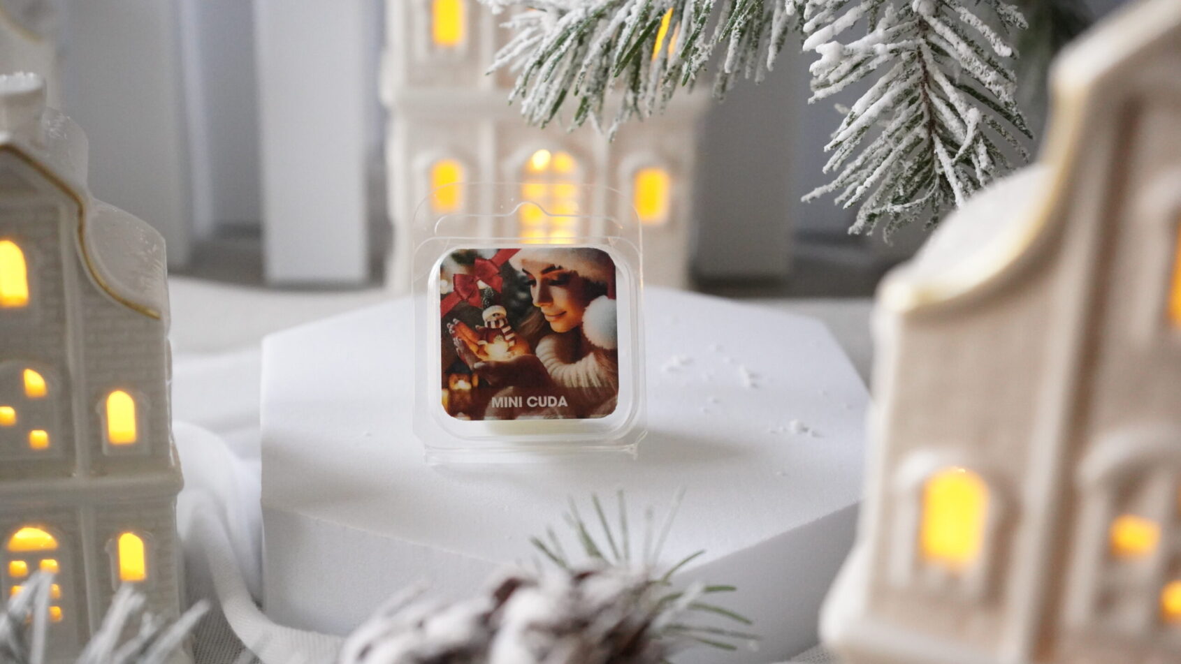 Piękna kobieta trzyma w dłoniach małego bałwanka☃️, który świeci jak maleńki cud – i właśnie tak pachnie ten wosk🌟❤️.  Mini Cuda to aromat, który wypełnia dom świeżością słodkiej pomarańczy🍊, otulonej miodem🍯 i kremową wanilią🍦. W tle czuć korzenne przyprawy, które dodają ciepła i głębi jak blask lampek choinkowych w zimowy wieczór.