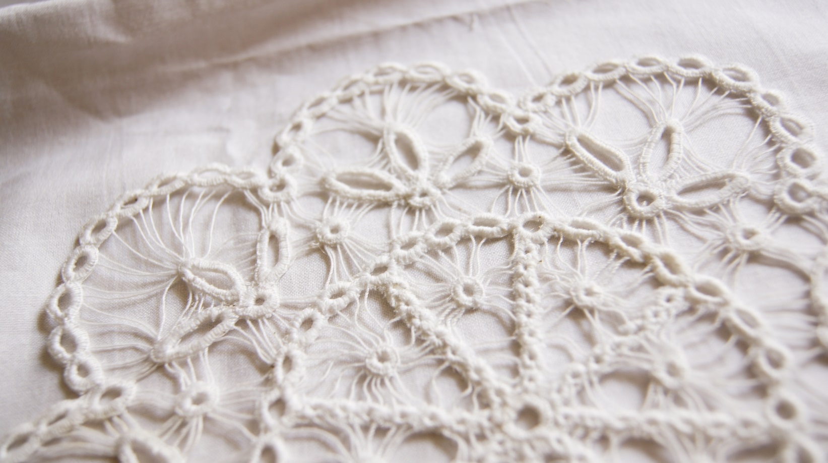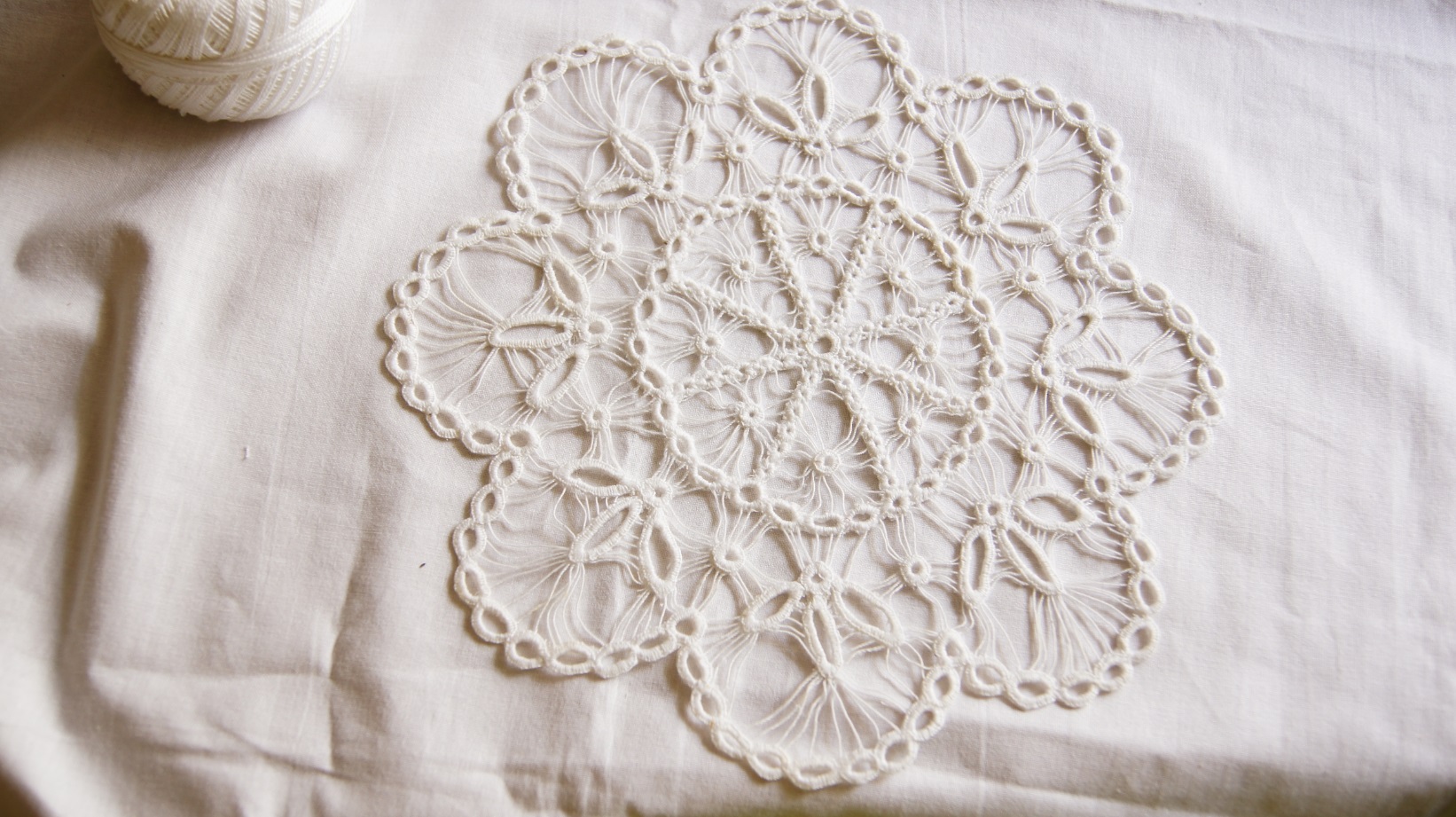 Okrągła biała serwetka ręcznie haftowana – Haft Richelieu