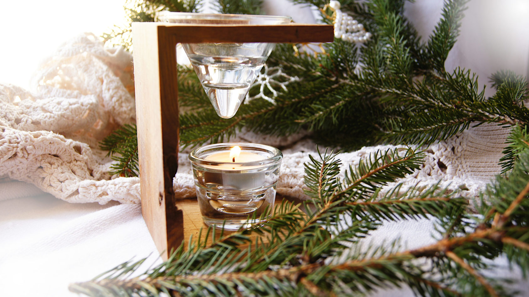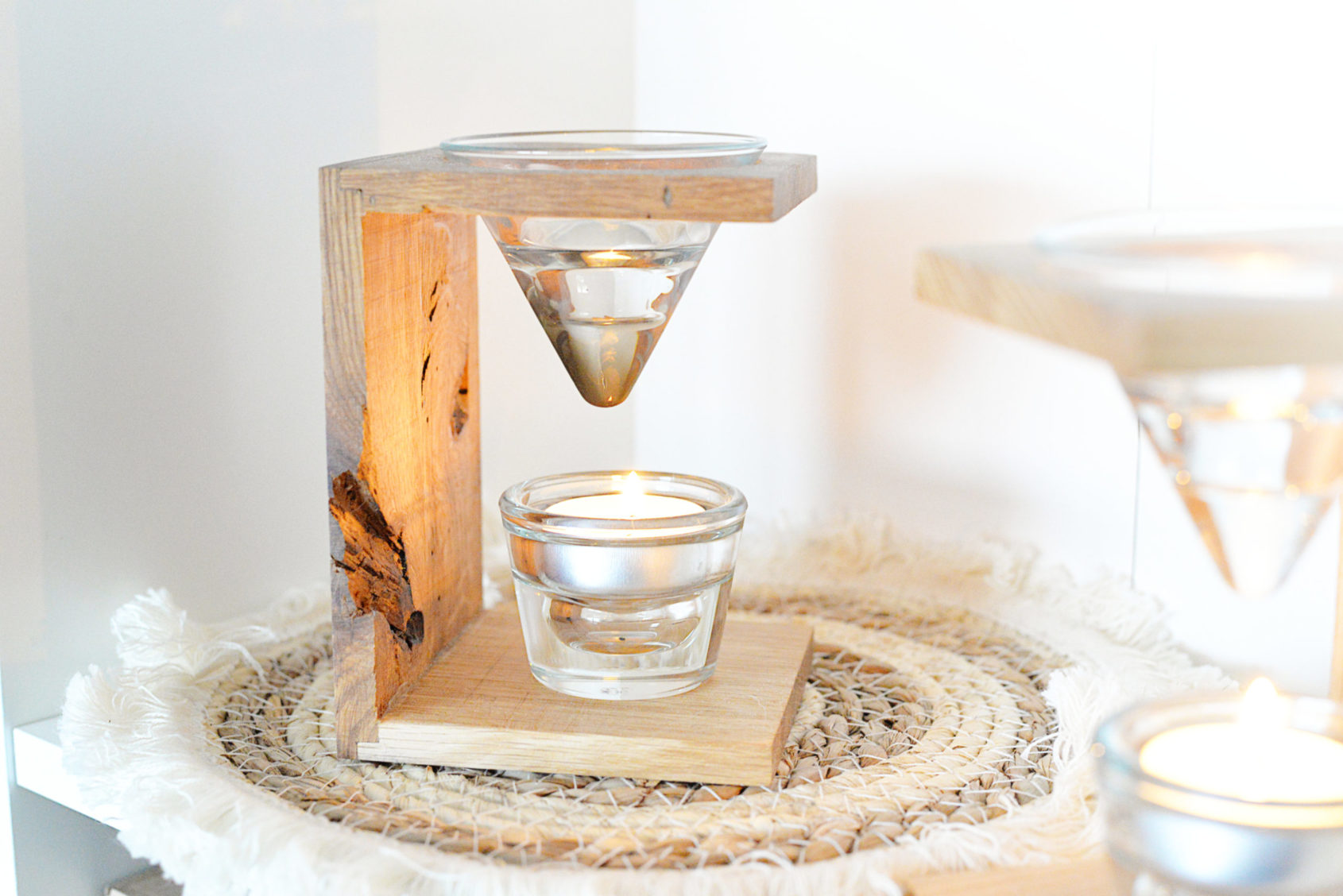 Pachnący zestaw z drewnianym kominkiem do wosków