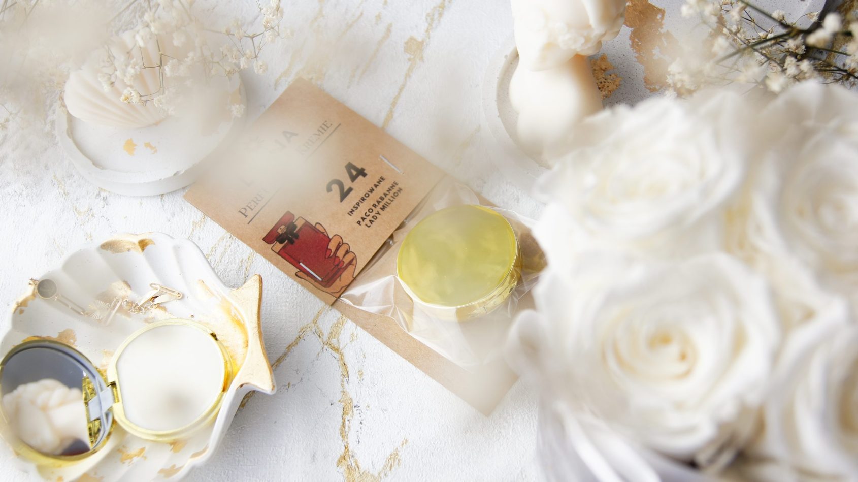 Piękne perfumy zatopione w wosku sojowym wraz ze specjalnymi dodatkami, aby trzymał się pięknie na Twojej skórze.