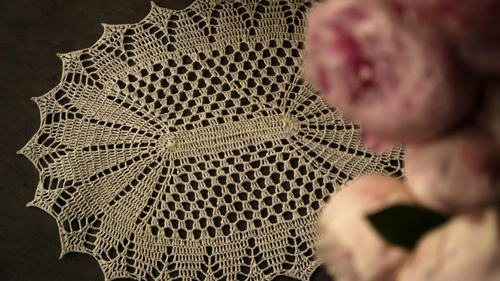 Ta ażurowa, ręcznie szydełkowa serweta to dzieło mojej Babci, w którym każde oczko to ślad jej rąk i serca. Owalna forma koronki dodaje elegancji, pełniąc także funkcję małego bieżnika. Połóż ją na stole pod wazonem, na komodzie pod ramkami z rodzinnymi fotografiami lub na toaletce pod świecznikiem – natychmiast poczujesz, jak przestrzeń wypełnia się domowym ciepłem i niepowtarzalnym klimatem.