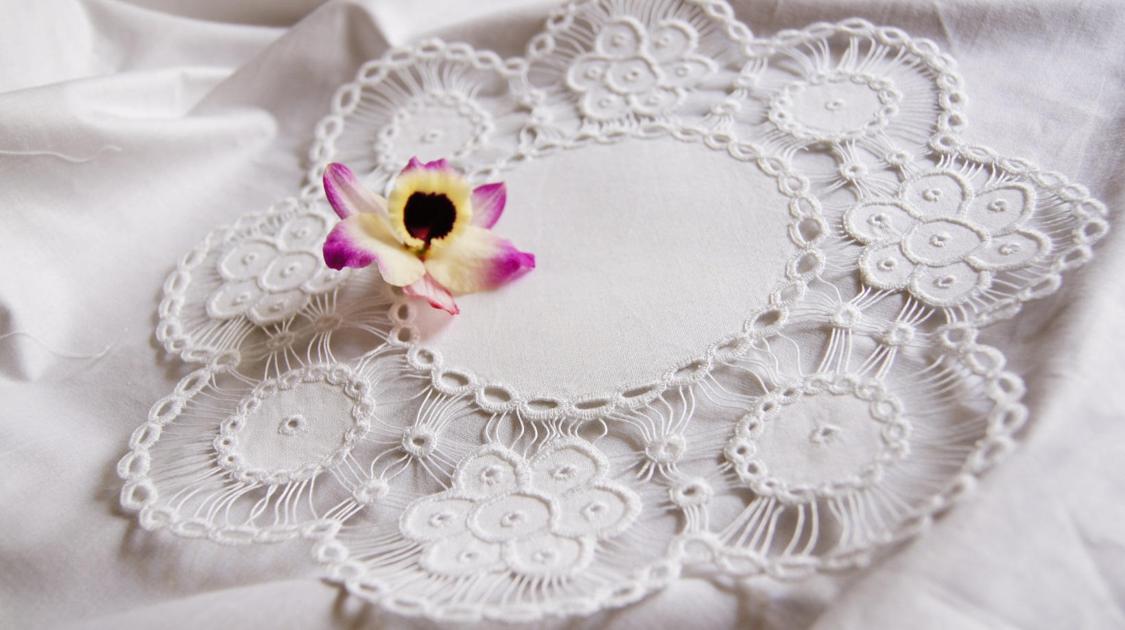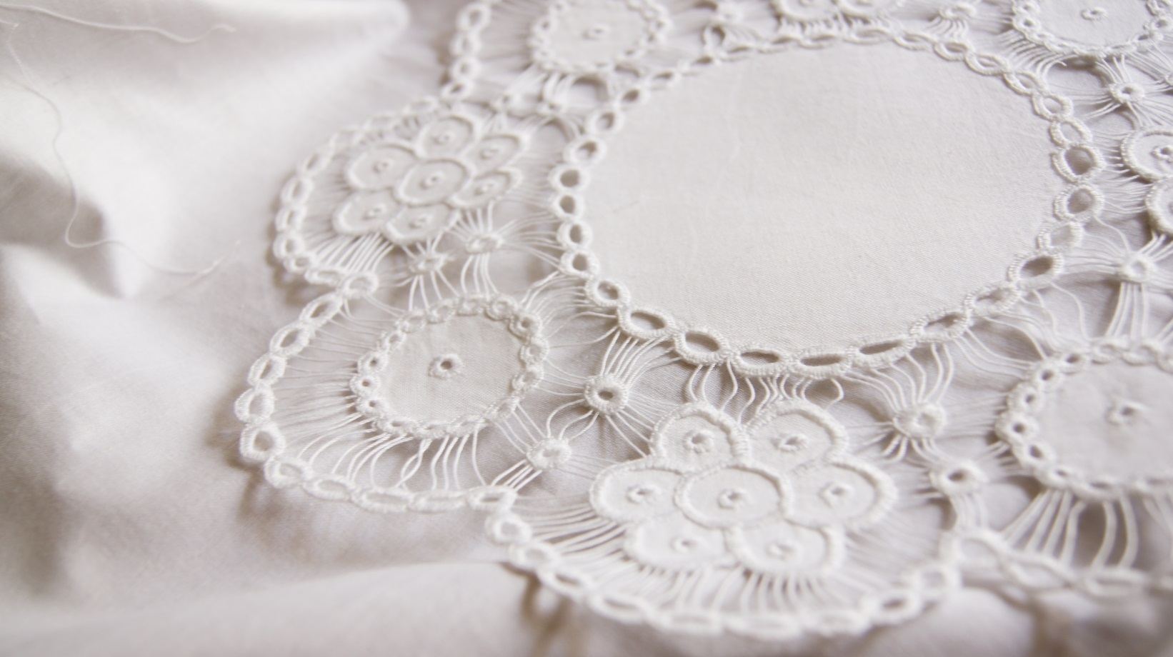 Serwetka biała okrągła ręcznie haftowana – Snutka Golińska
