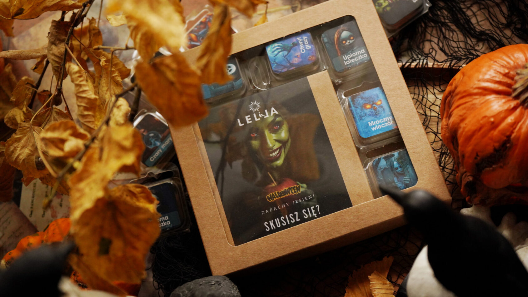 Co sprawia, że ten zestaw jest wyjątkowy? Możesz dowolnie wybierać spośród wszystkich zapachów z najnowszej kolekcji jesiennej i Halloween. Dzięki temu to Ty decydujesz, jaki aromat wypełni Twoje wnętrze. Może dziś wybierzesz połączenie ciepłej wanilii i przypraw, a jutro zaskoczy Cię mroczny, drzewny zapach paczuli i drewna cedrowego? Woski – wykonane z czystego wosku sojowego i oryginalnych kompozycji zapachowych – topią się powoli, stopniowo uwalniając swoje najpiękniejsze nuty, tworząc atmosferę pełną tajemnicy i przytulności.