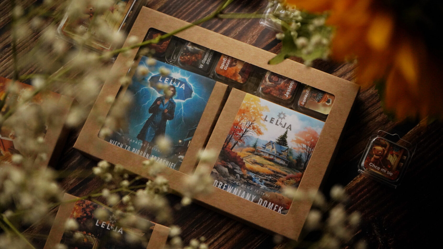 Zanurz się w świecie wyjątkowych zapachów tej jesieni i Halloween dzięki mojemu kolejnemu, wyjątkowemu zestawowi wosków zapachowych. Oferuję Ci możliwość stworzenia własnej kolekcji pachnących wosków, idealnie dopasowanych do Twojego nastroju i potrzeb. W ekologicznym pudełku z okienkiem znajdziesz 2 duże woski – każdy z 18 woskowymi kostkami w środku – oraz 5 mniejszych mini-wosków, które odkryją przed Tobą bogactwo aromatów – od słodkiej, jesiennej rozkoszy po mroczne i sekretne akordy idealne na Halloween.