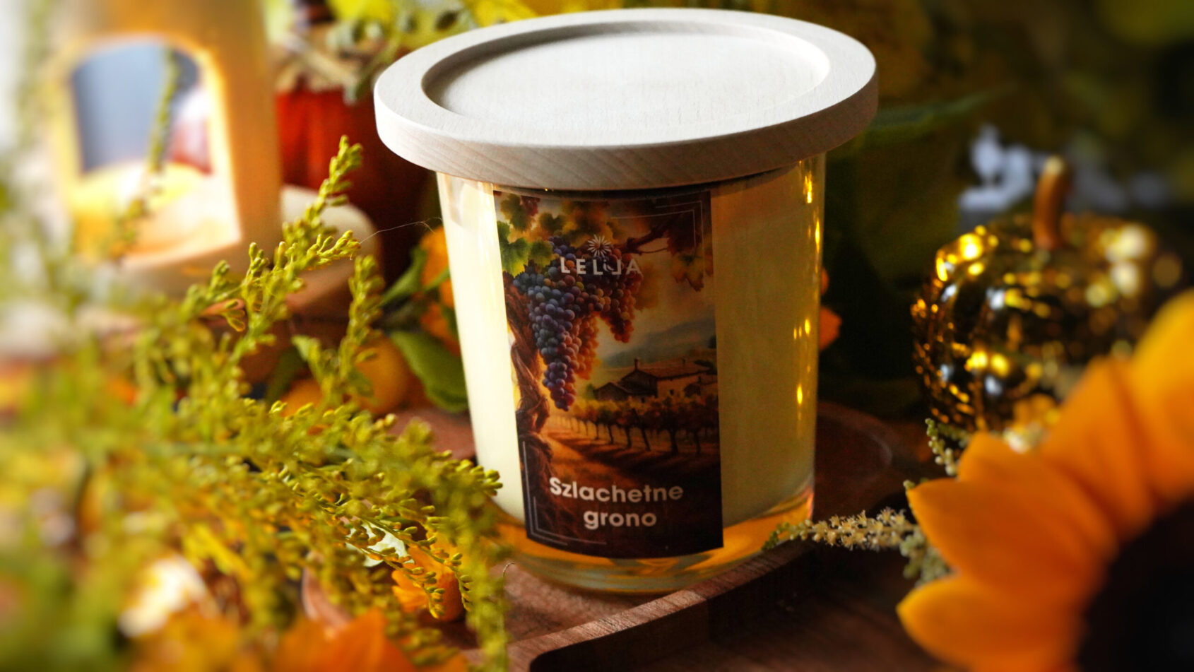 Jeśli pokochasz Szlachetne grono, odkryj inne świece z jesiennej kolekcji świec z drewnianą pokrywką, sięgnij po klasyczny wosk zapachowy o tej samej nucie lub poznaj całą gamę wykwintnych aromatów, które sprawią, że Twój dom będzie pachniał jak najpiękniejsze wspomnienia z podróży po jesiennych szlakach.