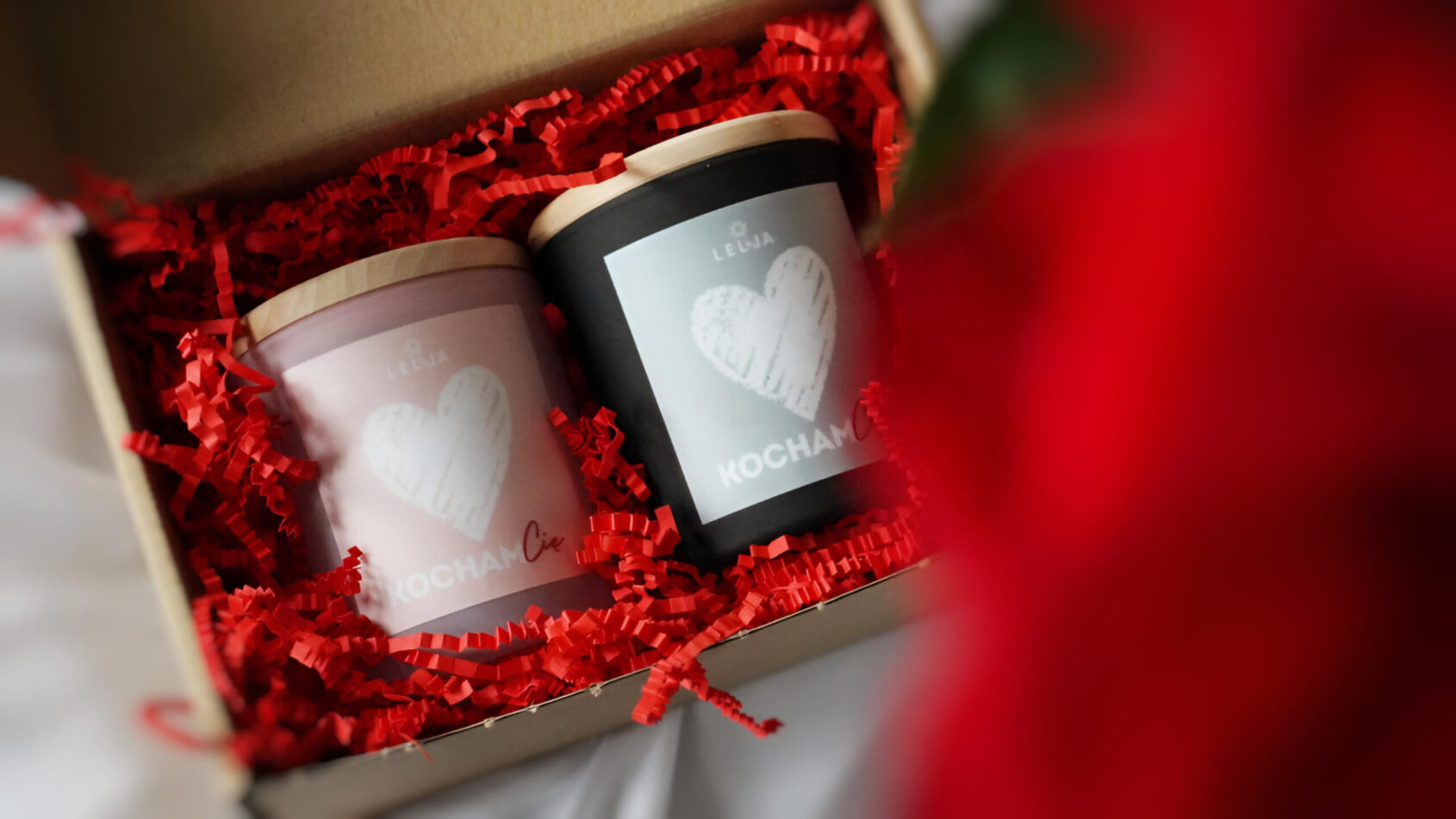 SOJOWA ŚWIECA ZAPACHOWA DLA NIEJ w uroczym, pudrowo-różowym szkle z napisem „Kocham Cię”