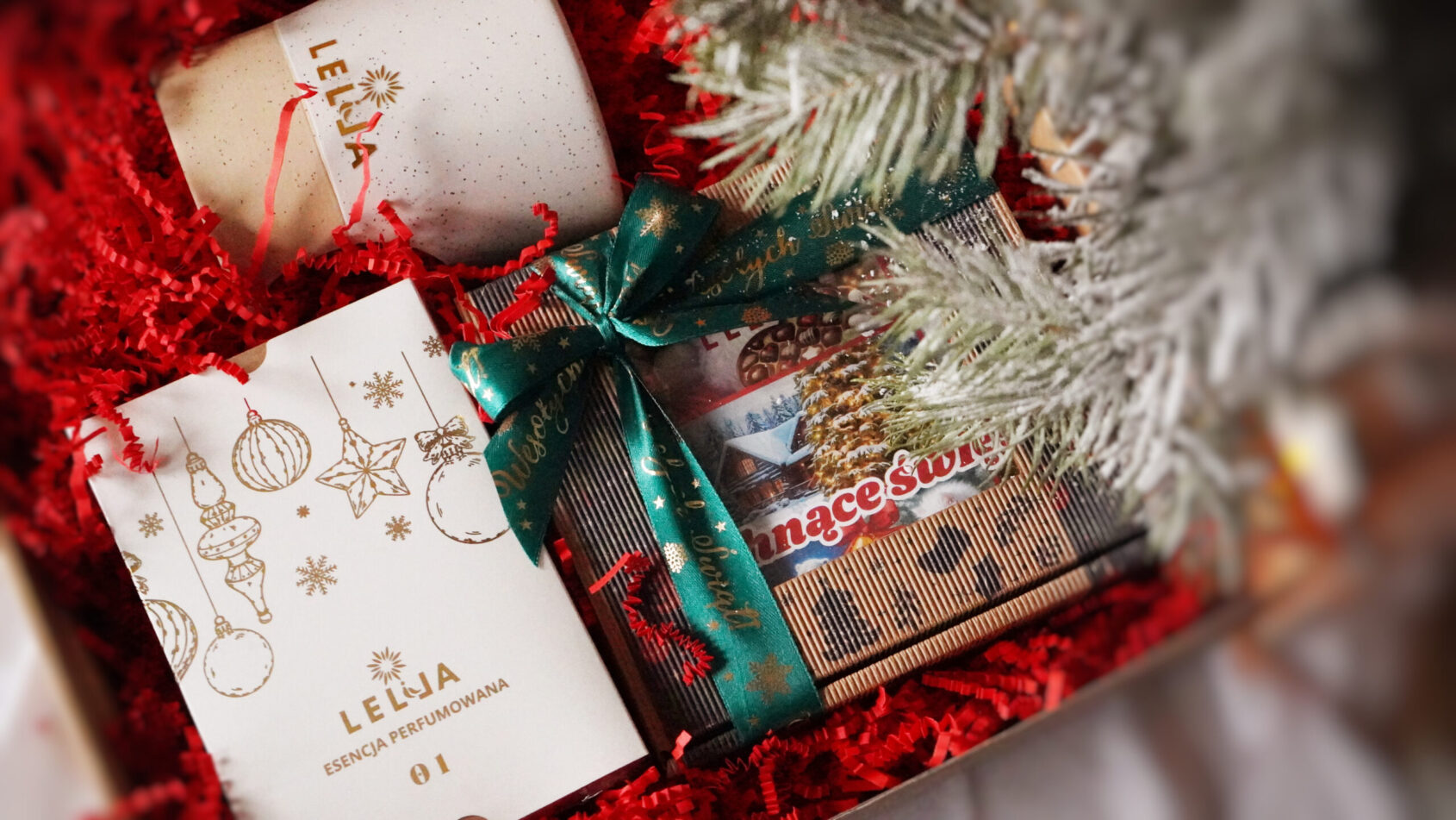 - esencję perfumowaną LELLA 01 (30 ml) z pięknym pudełku ze świątecznym motywem i eleganckim, szklanym flakonie perfumeryjnym