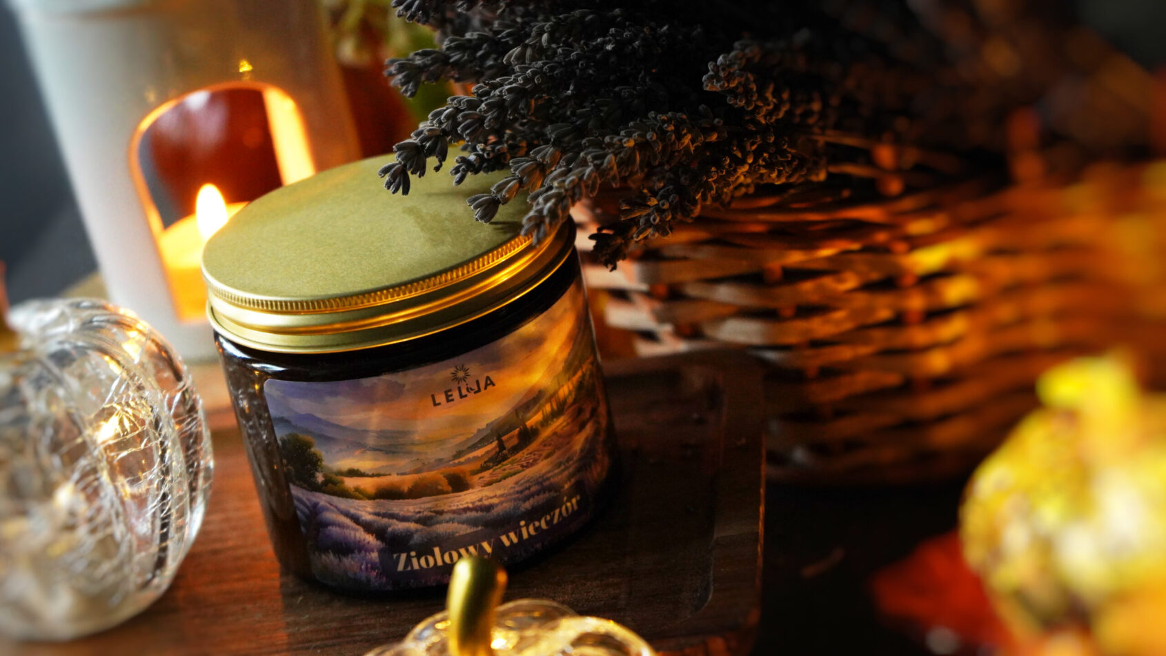 Zapal Ziołowy wieczór i przenieś się myślami na pachnące pola lawendy, gdzie czas płynie wolniej, a powietrze wibruje spokojem. Ta kompozycja koi jak wieczorna rozmowa z kimś, kto zna Cię bez słów – wyciszająca lawenda przeplata się ze szlachetnym cedrem, a na koniec otula Cię ciepła, słodka wanilia. W bursztynowym szkle ukryłam światło, które pasuje do każdej jesiennej chwili – tej z książką, herbatą, ciszą. Złota pokrywka dodaje elegancji niczym najlepsza biżuteria – bo przecież relaks też jest wyrazem luksusu. Nie czekaj, aż jesień przeminie, chwyć za świecę i zatrzymaj ten złoty moment na dłużej!